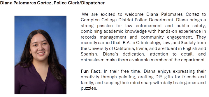 The Compton Community College District (CCCD) recently welcomed the following full-time