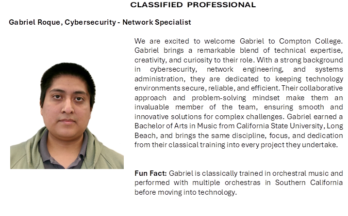 The Compton Community College District (CCCD) recently welcomed the following full-time